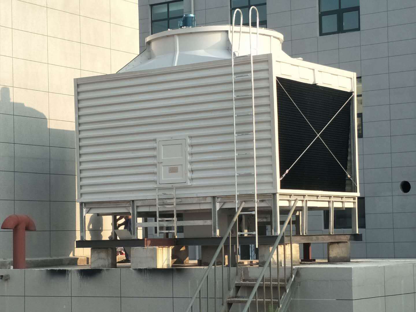 玻璃鋼冷卻塔 通常由玻璃鋼材質制成,并采用填料層或管束來增加傳熱面積。